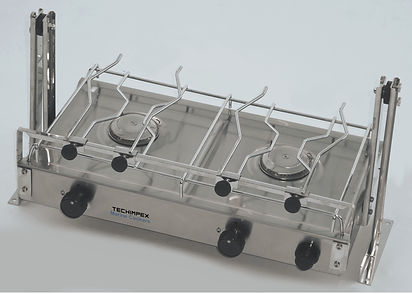 RACERDouble burner cooker with stainless steel burners. Compact 45 cm size. Gimbals and panholders inc ignition