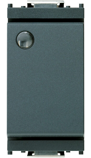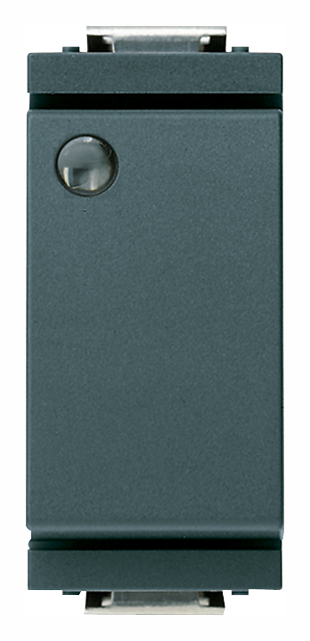 1P 16 AX 250 V~ 2-way switch, luminous, for signalling unit, grey – reduced module. Provided without signalling unit. Max 200 W for self-ballasted lamps (IEC 60669-1:2017)