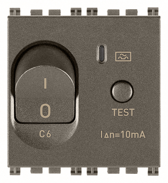 1P+N C 6 residual current breaker with overcurrent protection, supply voltage 120-230 V~ 50-60 Hz, I?n 10 mA, breaking capacity 1500 A, Metal – 2 modules