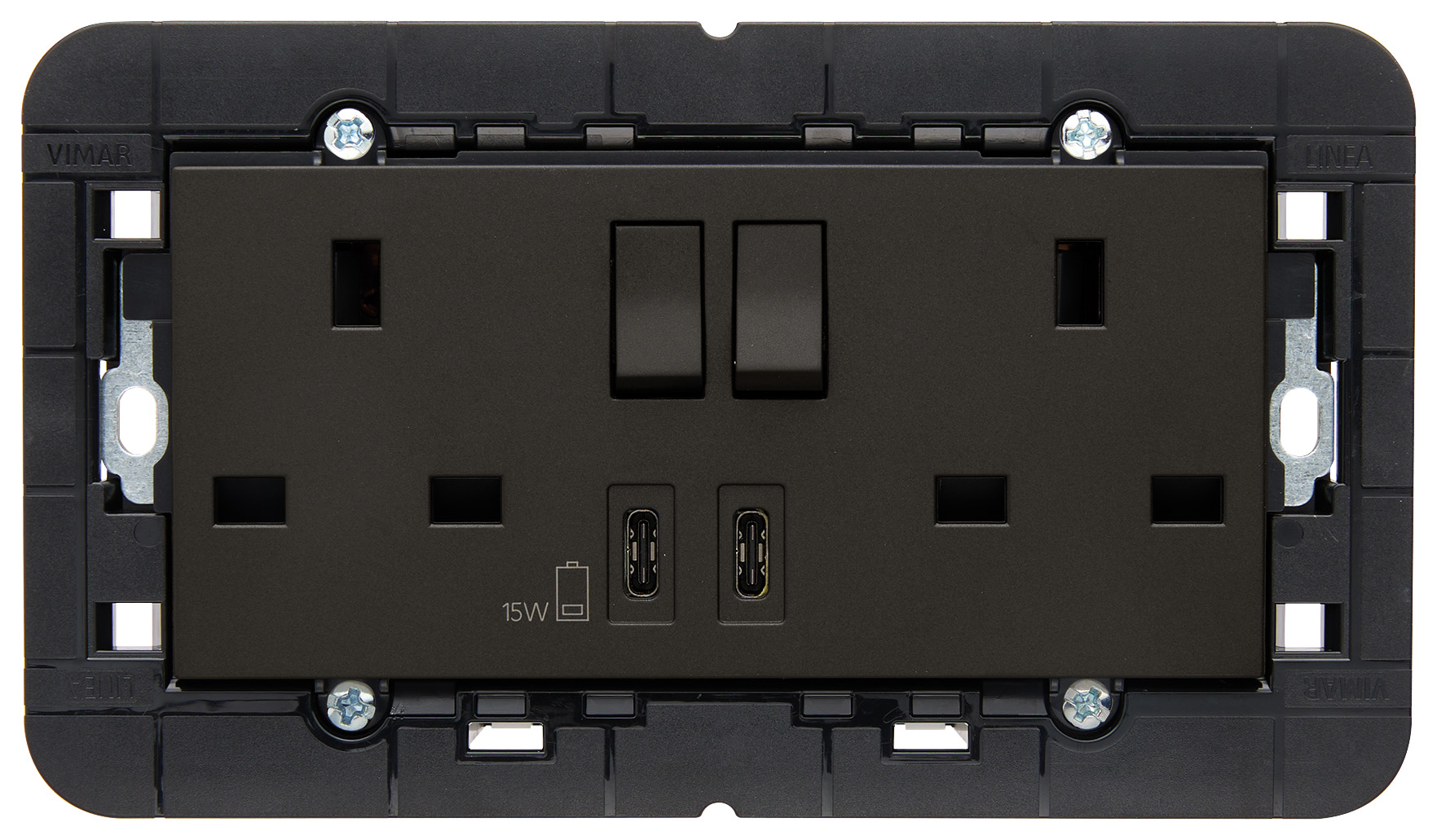 2 2P+E13ABS socket+red switch+C/C-USB bl