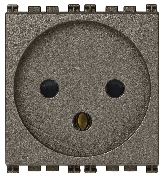 2P+E 16 A 250 V~ SICURY socket outlet, French standard, with cover, screwless terminals, Metal – 2 modules
