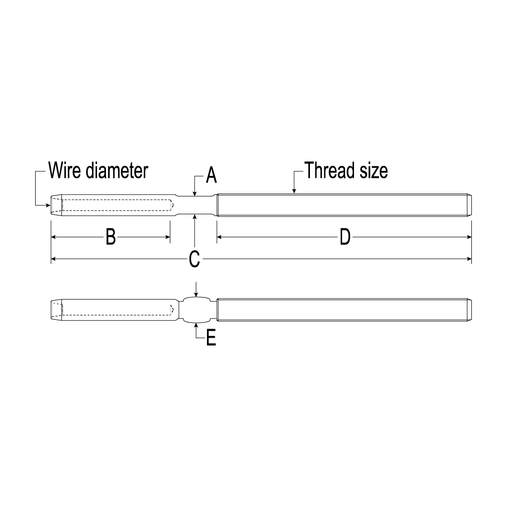 T10 Swg Terminal, 1/2″ Wire, 7/8” Thread Technical Datasheet