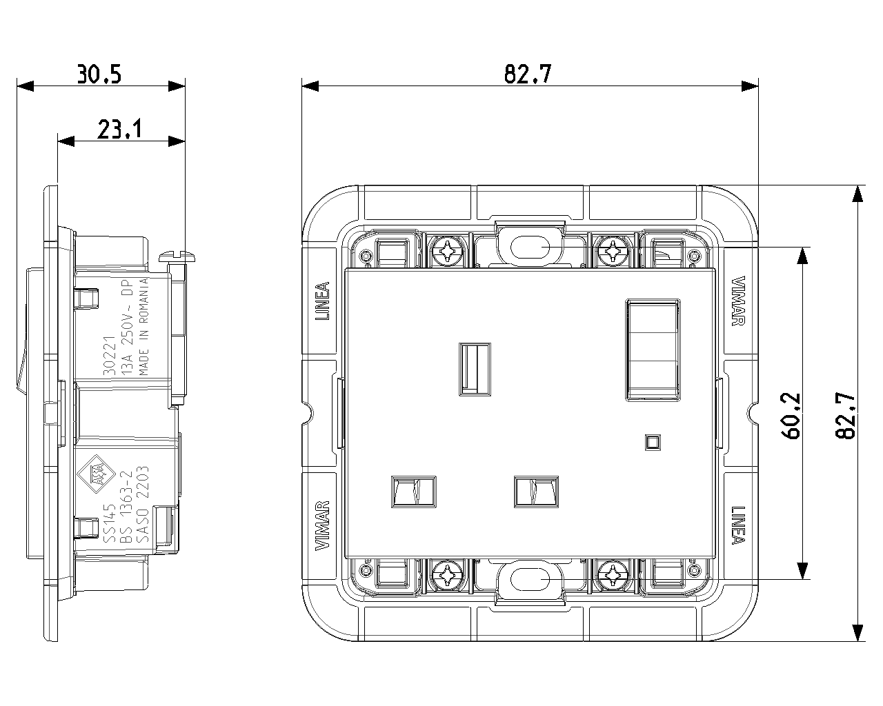 Switch.2P+E 13A Englishsock.+pilot black Technical Datasheet