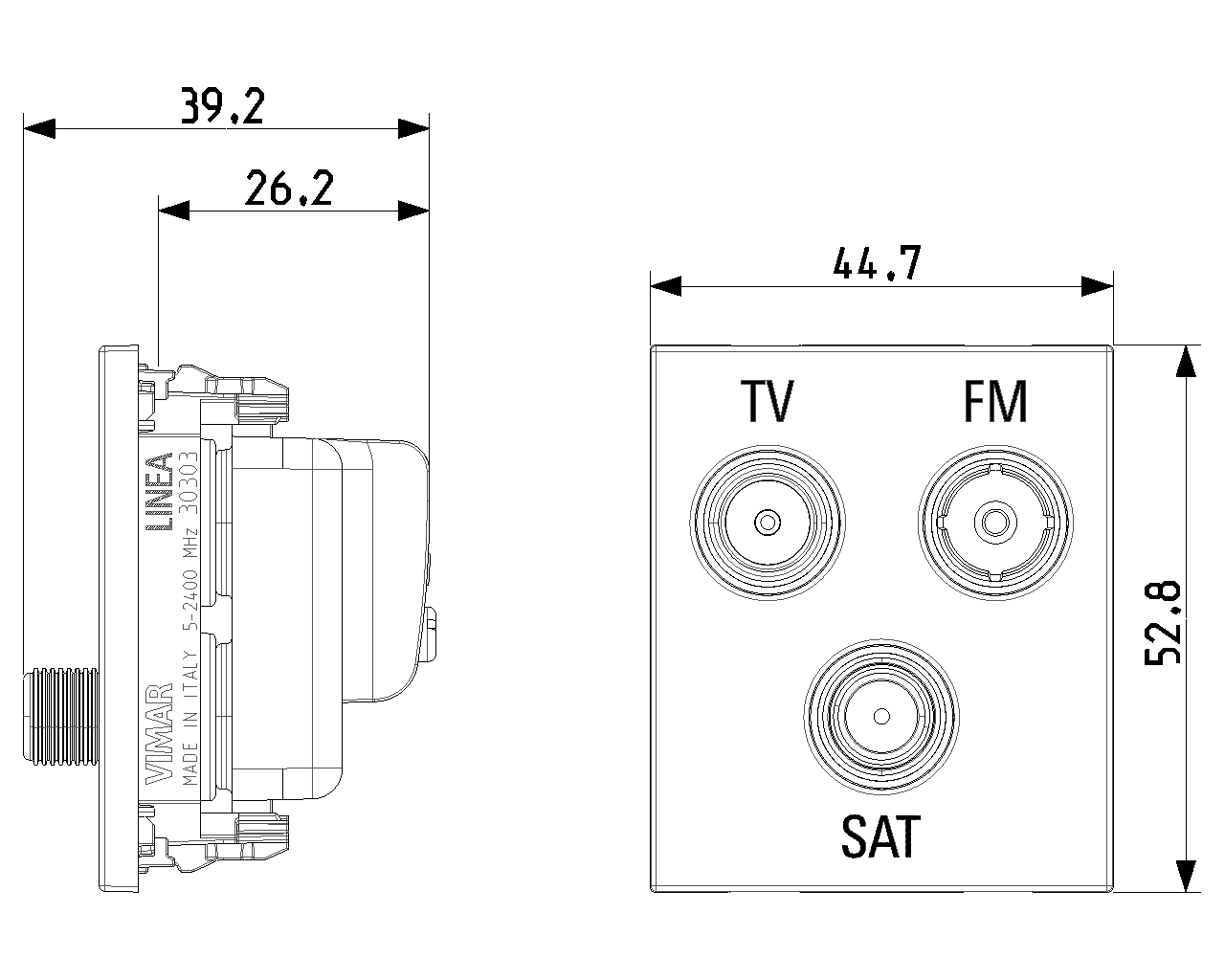 TV-FM-SAT single-con.socket outlet 3 out Technical Datasheet