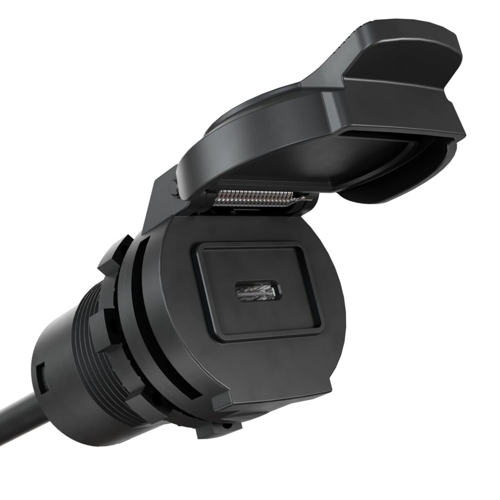 The AquaAmp SeaSocket is a marine-grade power outlet disguised as a cup holder, delivering 12 V/30 A (360 W) with compatible accessories. Made from UV-stable plastics and marine metals, it resists corrosion and harsh conditions. NFC-authenticated smart leads prevent misuse, making it ideal for boats, UTVs, and carts, enabling plug-and-play power for devices without custom wiring.