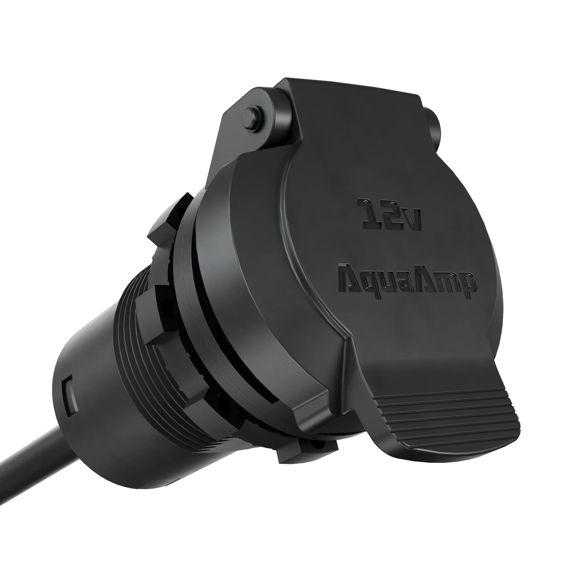 The AquaAmp SeaSocket is a marine-grade power outlet disguised as a cup holder, delivering 12 V/30 A (360 W) with compatible accessories. Made from UV-stable plastics and marine metals, it resists corrosion and harsh conditions. NFC-authenticated smart leads prevent misuse, making it ideal for boats, UTVs, and carts, enabling plug-and-play power for devices without custom wiring.